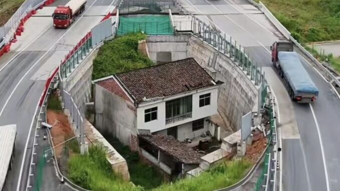 “Đôi Mắt Kim Xuyến” là tên gọi của một ngôi nhà đặc biệt nằm giữa đường cao tốc giữa lòng thành phố Phúc Châu, tỉnh Giang Tây, Trung Quốc. Ngôi nhà hai tầng này từng được biết đến như một biểu tượng của những người dân không chịu nhượng bộ trước áp lực đô thị hóa, nhưng cuối cùng, tiếng ồn không ngừng từ đường cao tốc G206 đã khiến gia đình chủ nhà Huang Ping (tên đã được thay đổi) phải tìm chốn bình yên khác.