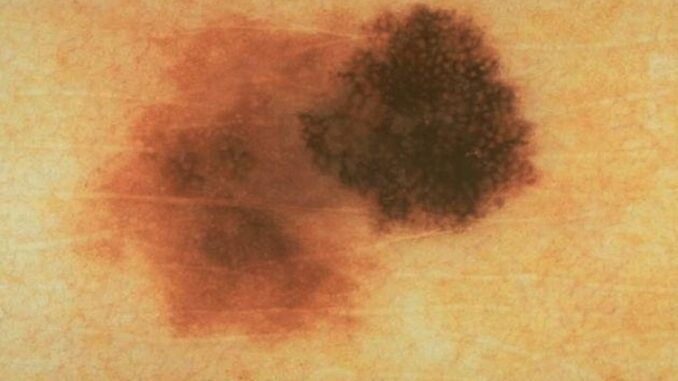 Ung thư có thể gây ra những thay đổi trên da như tăng sắc tố hoặc đốm đen; nốt trên da lớn dần, kích thước có thể lớn hơn cục tẩy bút chì; các nốt có màu sắc không nhất quán, cả màu đen và màu nâu; nốt không đối xứng hoặc có các cạnh răng cưa; vét loét trên da không biến mất hoặc đã lành nhưng tái phát lại; vàng da.